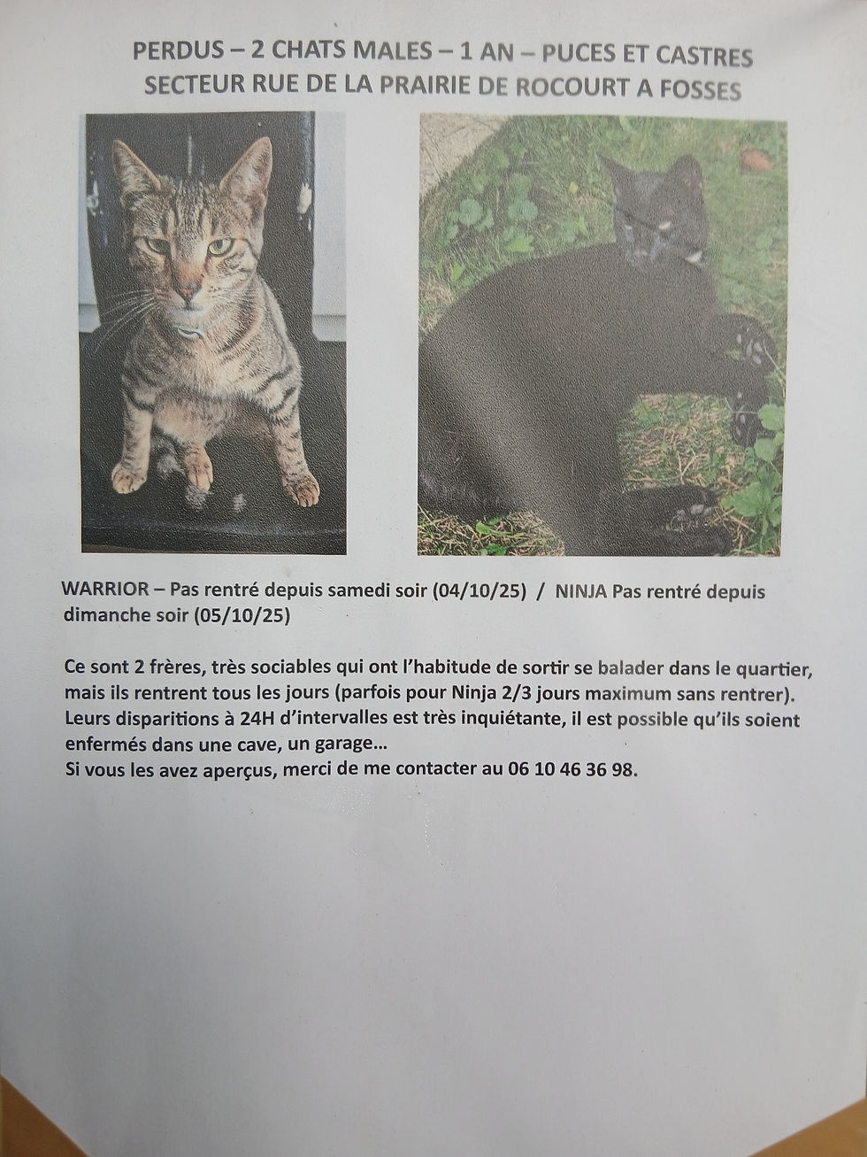 Perdu 2 chats mâles WARRIOR et NINJA